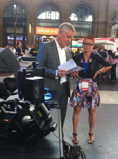 Im Bild Röbi Koller, der Moderator und Regula Tobler, Realisatorin.