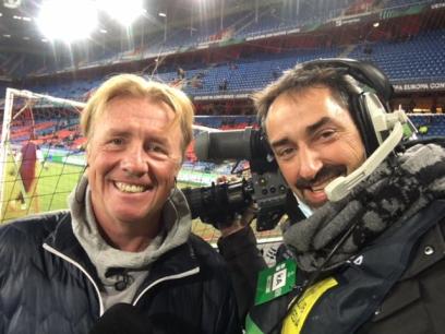 FCB Conference League FCB-Omonoia 3:1. Im Bild Rene Häfliger , Moderator und meine Wenigkeit