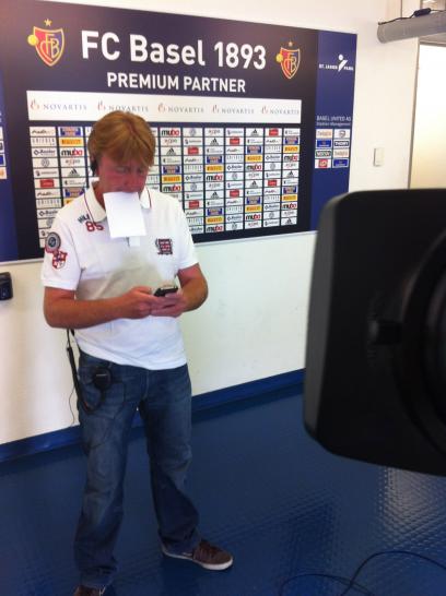 Beim Champions-Quali Spiel FCB-Talinn. Im Bild Rene Häfliger bei den Vorbereitungen fürs StadionTV