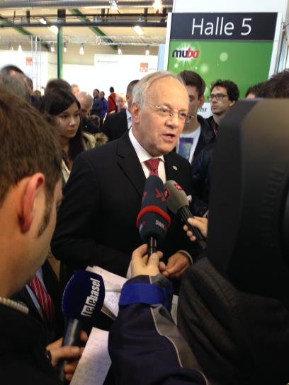 Bundesrat Schneider-Ammann eröffnete heute die Muba. Junge Linke demonstrierten gegen seine Offshore-Geschäfte.