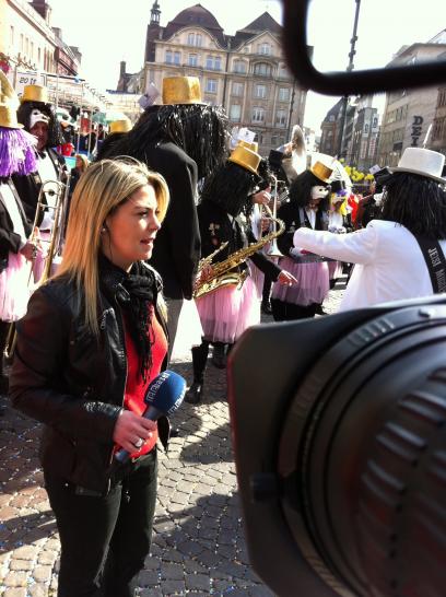 Am Fasnachtsdienstag auf dem Marktplatz in Basel. Super Schönes Wetter. Liveübertragung mit Diana Bevilaqua