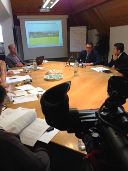 Für die Sendung "7vor". Medienkonferenz des Gemeindepräsidenten über die Sparmassnahmen der Gemeinde Binningen